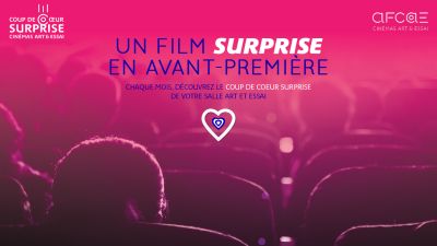 En partenariat avec l’Association Française des Cinémas Art et Essai, nous vous donnons rendez-vous chaque mois pour une avant-première surprise autour de l’un des films soutenus par le groupe Actions Promotion de l’AFCAE. Réservez votre soirée et faites-nous confiance, surprise et découverte (découverte et sensations) seront au rendez-vous ! Le titre du film sera dévoilé au moment de la projection.